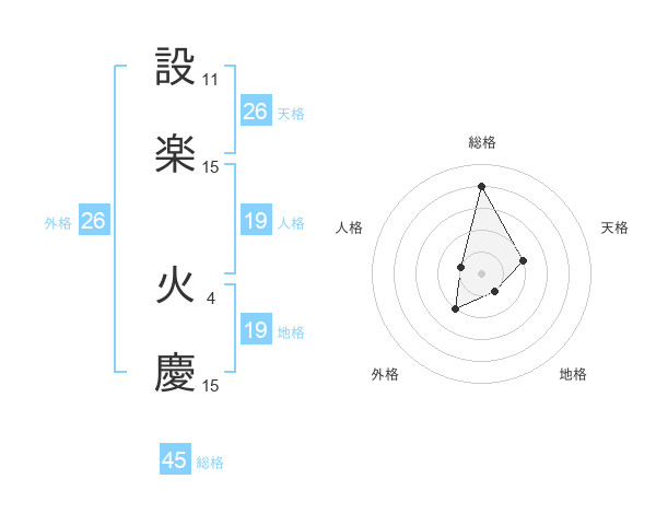 設楽 火慶さんの総格は45画の4点!