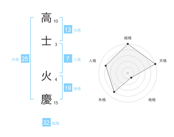 高士 火慶さんの総格は32画の5点!
