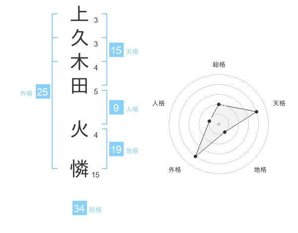上久木田 火憐さんを姓名の画数から五運を鑑定