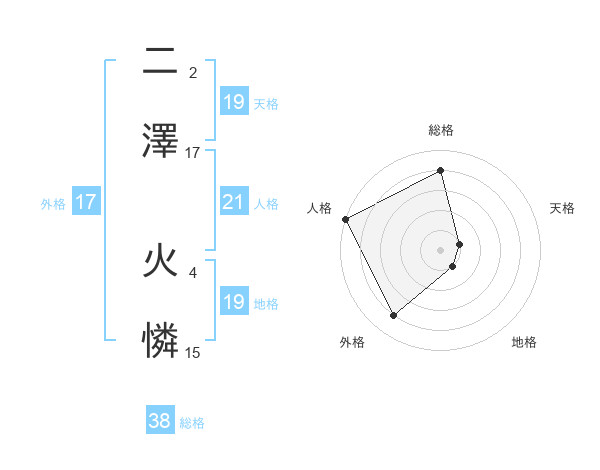 二澤 火憐さんの天格は19画の1点!