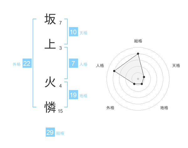 坂上 火憐さんを姓名の画数から五運を鑑定