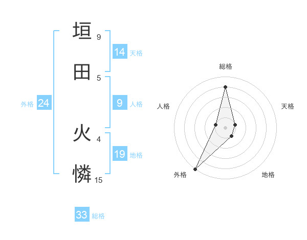 垣田 火憐さんを姓名の画数から五運を鑑定