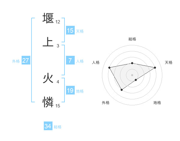 堰上 火憐さんを姓名の画数から五運を鑑定