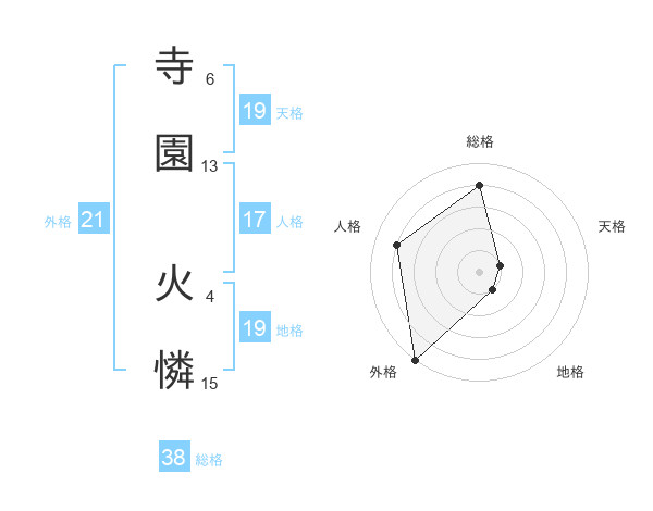 寺園 火憐さんの天格は19画の1点!