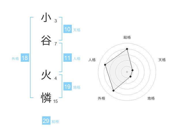 小谷 火憐さんを姓名の画数から五運を鑑定
