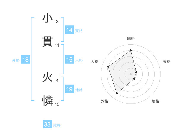 小貫 火憐さんの総格は33画の4点!