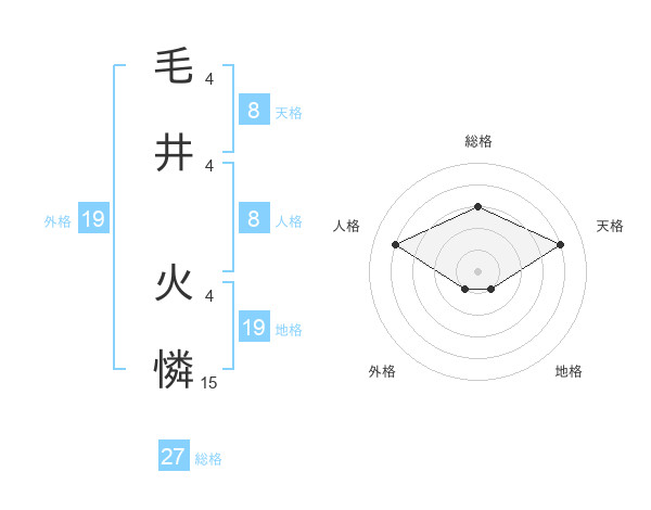 毛井 火憐さんを姓名の画数から五運を鑑定