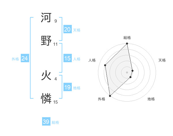 河野 火憐さんの総格は39画の5点!