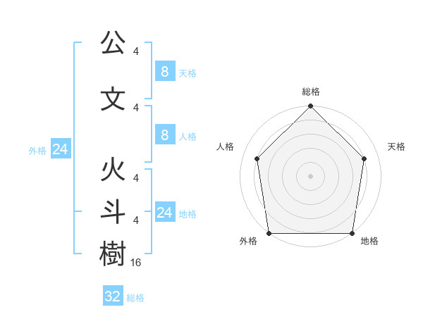公文 火斗樹さんを姓名の画数から五運を鑑定