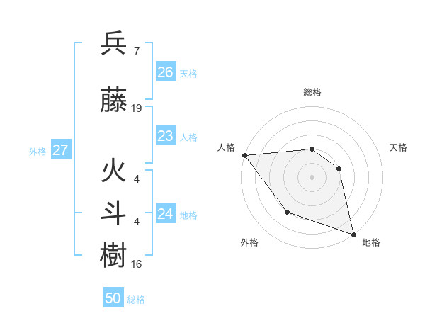 兵藤 火斗樹さんの総格は50画の2点!