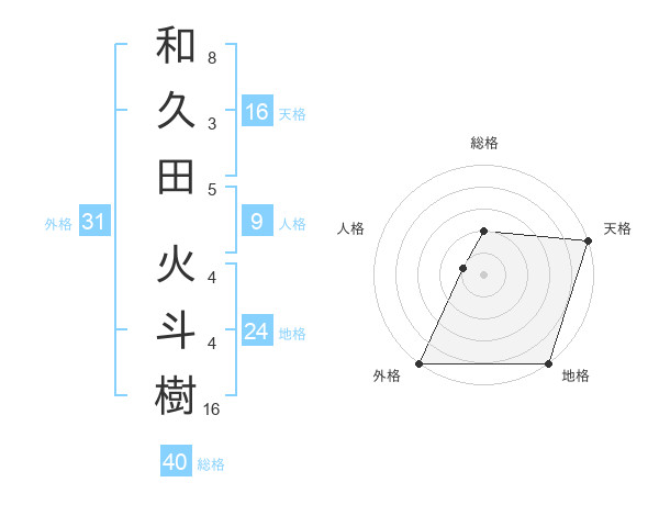 和久田 火斗樹さんを姓名の画数から五運を鑑定