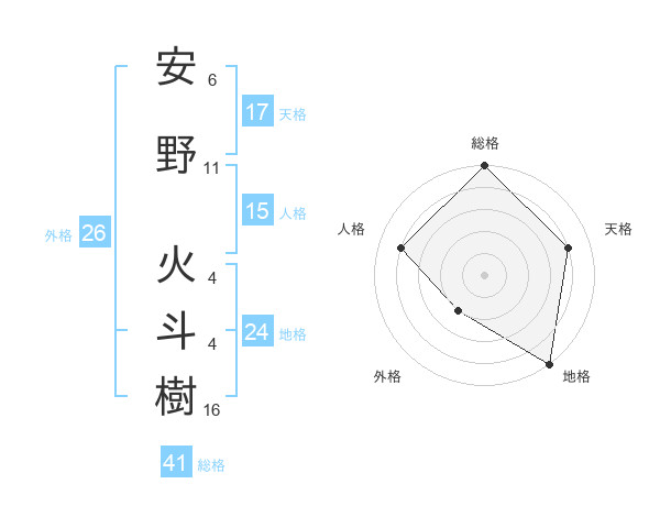 安野 火斗樹さんを姓名の画数から五運を鑑定