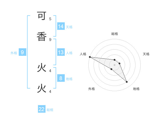 可香 火火さんの総格は22画の1点!