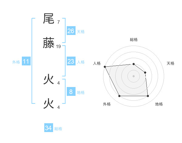 尾藤 火火さんを姓名の画数から五運を鑑定