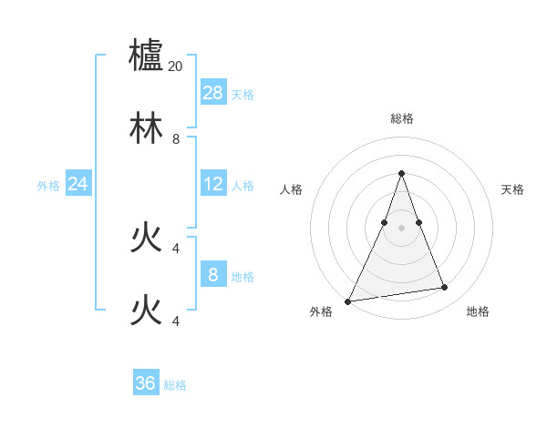 櫨林 火火さんを姓名の画数から五運を鑑定