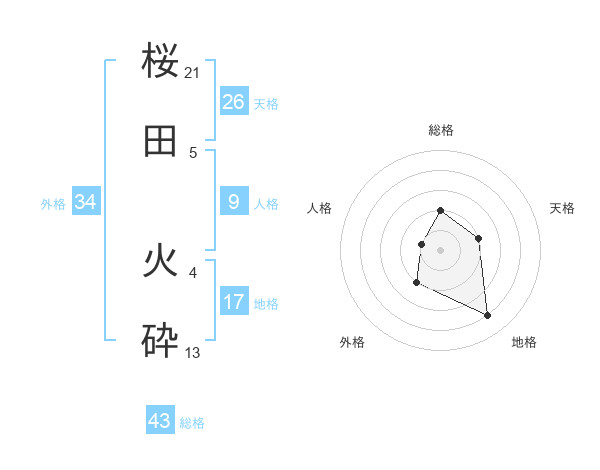 桜田 火砕さんを姓名の画数から五運を鑑定