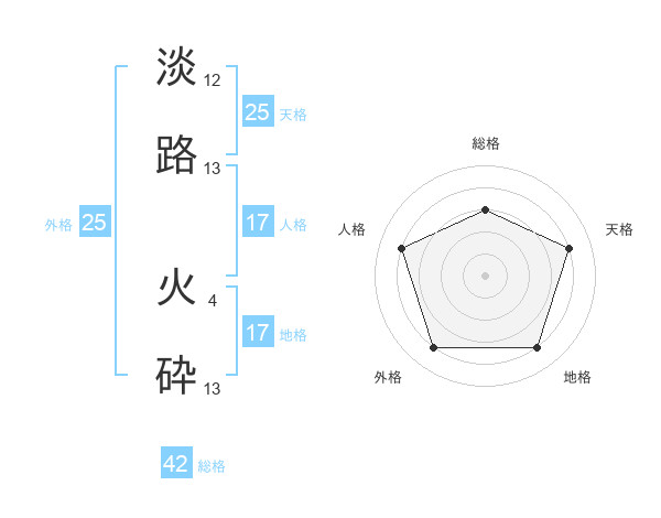 淡路 火砕さんを姓名の画数から五運を鑑定