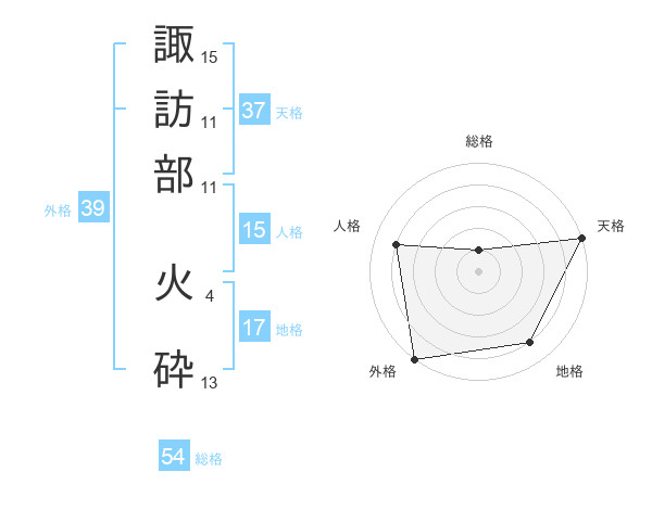 諏訪部 火砕さんを姓名の画数から五運を鑑定