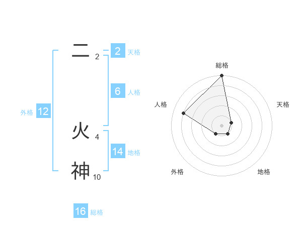 二 火神さんの総格は16画の5点!