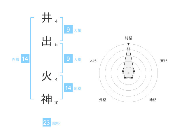井出 火神さんの総格は23画の5点!