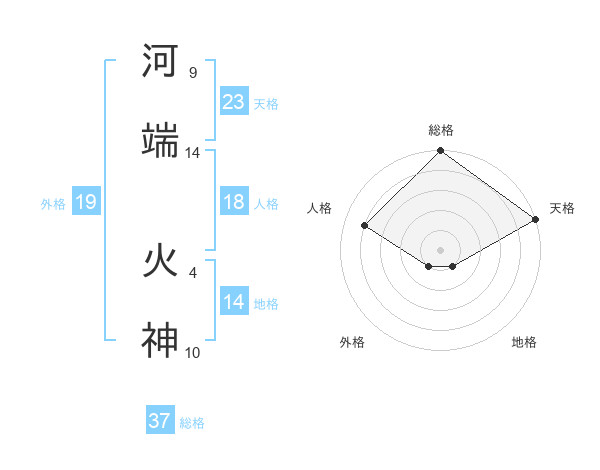 河端 火神さんの総格は37画の5点!
