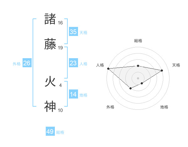 諸藤 火神さんを姓名の画数から五運を鑑定
