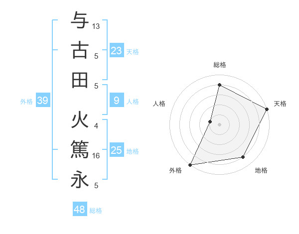 与古田 火篤永さんの外格は39画の5点!