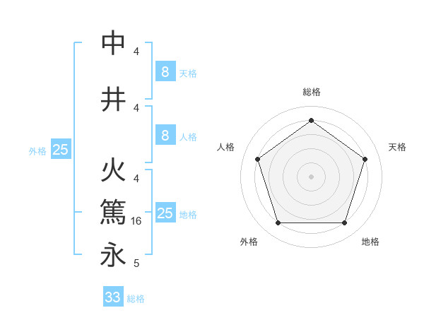中井 火篤永さんの総格は33画の4点!