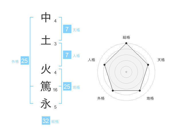 中土 火篤永さんを姓名の画数から五運を鑑定