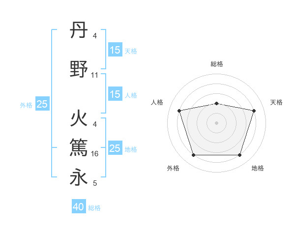 丹野 火篤永さんの地格は25画の4点!