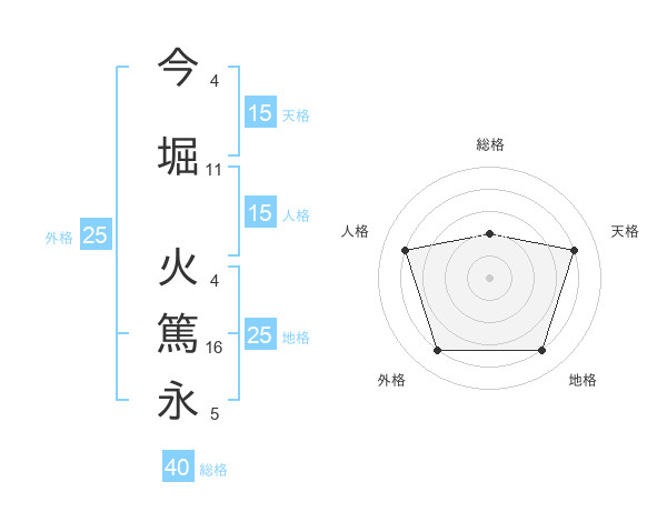 今堀 火篤永さんを姓名の画数から五運を鑑定