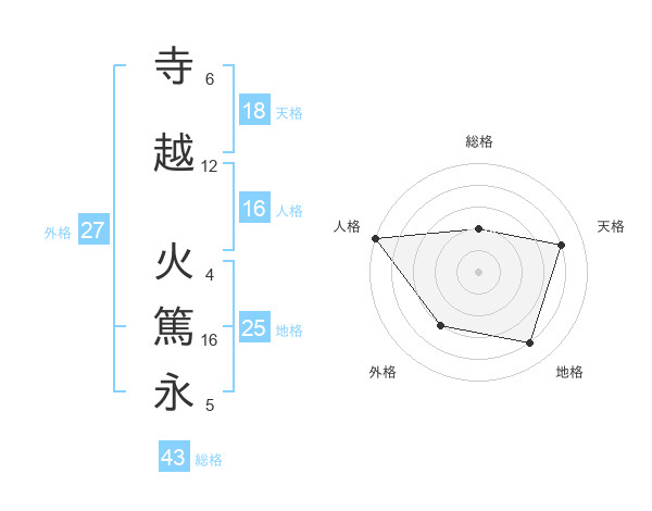 寺越 火篤永さんを姓名の画数から五運を鑑定