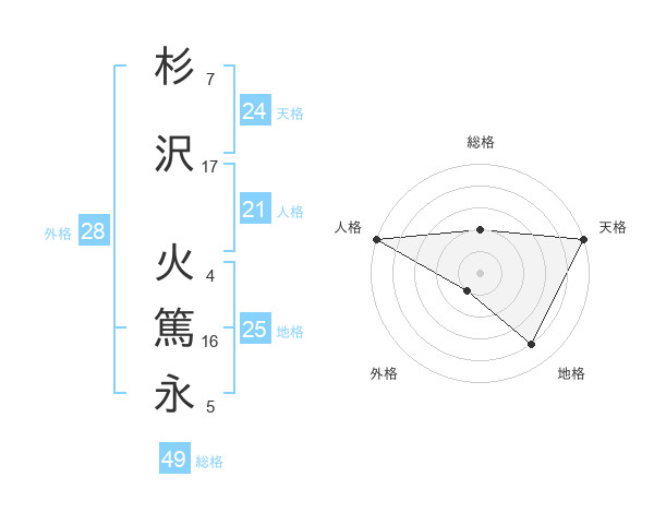 杉沢 火篤永さんを姓名の画数から五運を鑑定