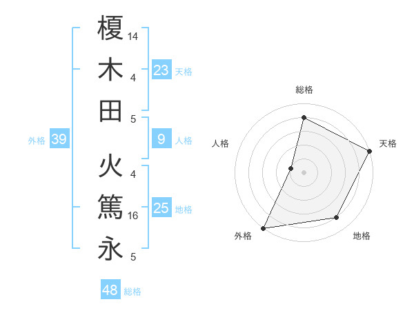 榎木田 火篤永さんを姓名の画数から五運を鑑定