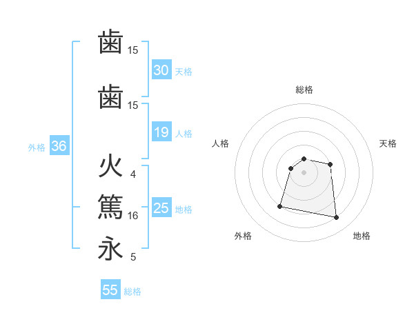 歯歯 火篤永さんの総格は55画の1点!