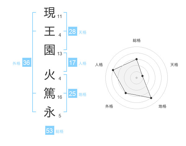 現王園 火篤永さんの総格は53画の3点!
