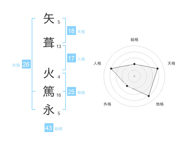 矢葺 火篤永さんの総格は43画の2点!