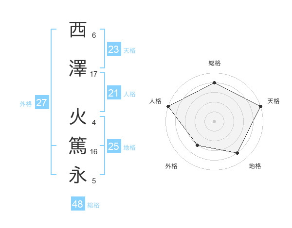 西澤 火篤永さんを姓名の画数から五運を鑑定