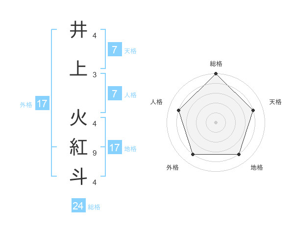 井上 火紅斗さんを姓名の画数から五運を鑑定