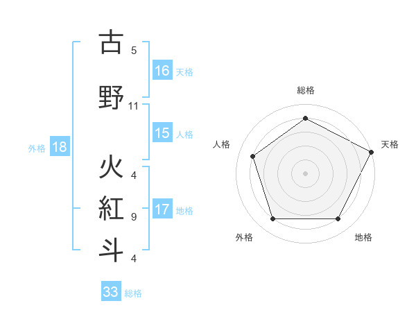古野 火紅斗さんを姓名の画数から五運を鑑定