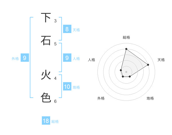 下石 火色さんの総格は18画の4点!