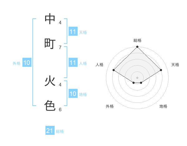 中町 火色さんの総格は21画の5点!