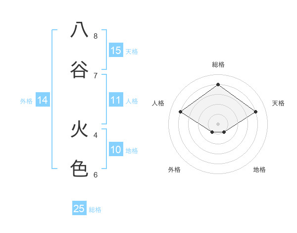 八谷 火色さんの総格は25画の4点!