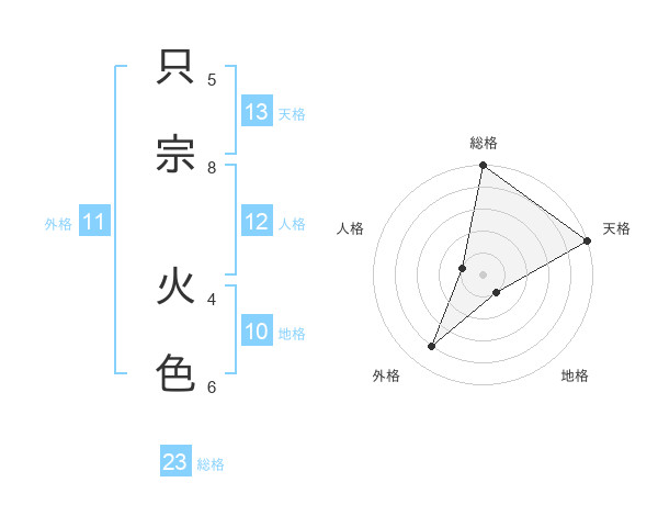 只宗 火色さんの総格は23画の5点!