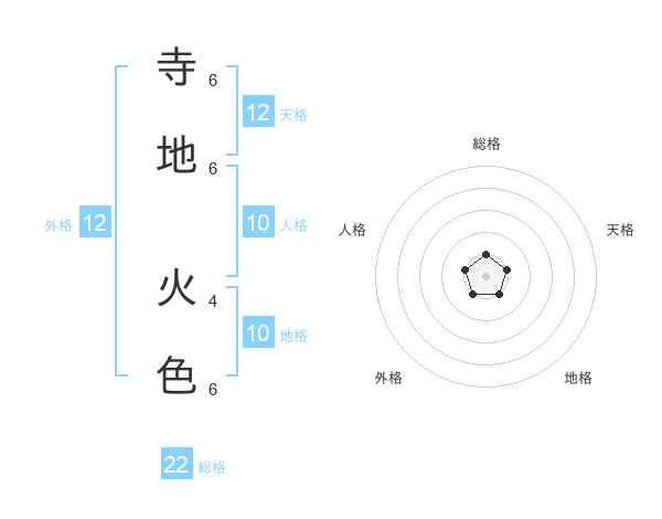 寺地 火色さんを姓名の画数から五運を鑑定