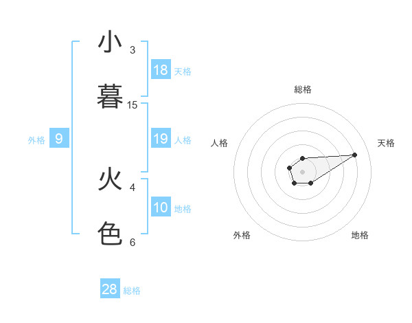 小暮 火色さんの総格は28画の1点!