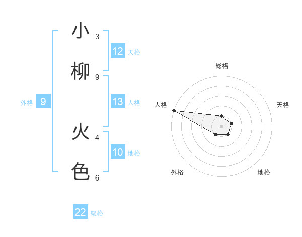 小柳 火色さんの総格は22画の1点!