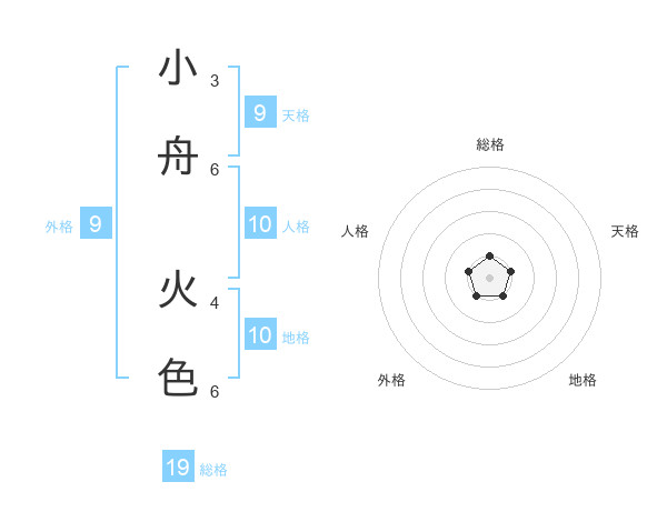 小舟 火色さんの地格は10画の1点!