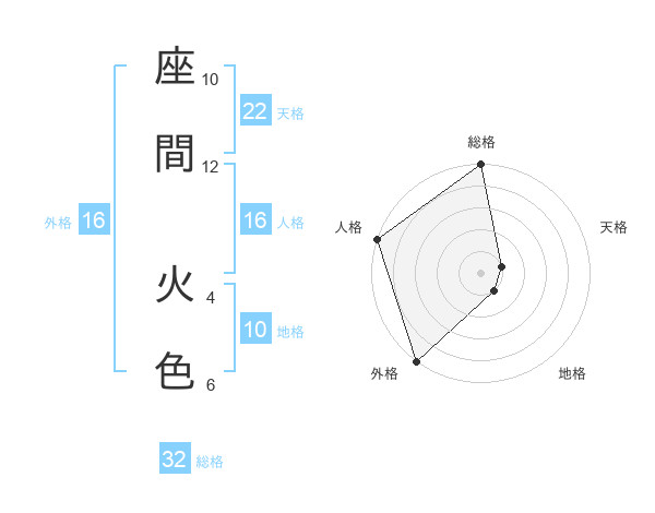 座間 火色さんの総格は32画の5点!