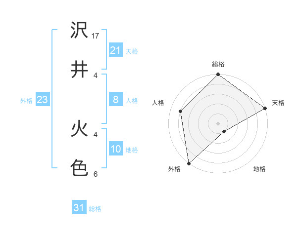 沢井 火色さんの外格は23画の5点!